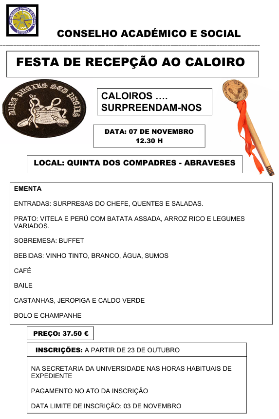 No próximo dia 07/11, o Conselho Académico Social (CAS) vai levar a efeito uma atividade para integração dos novos alunos da USAVIS